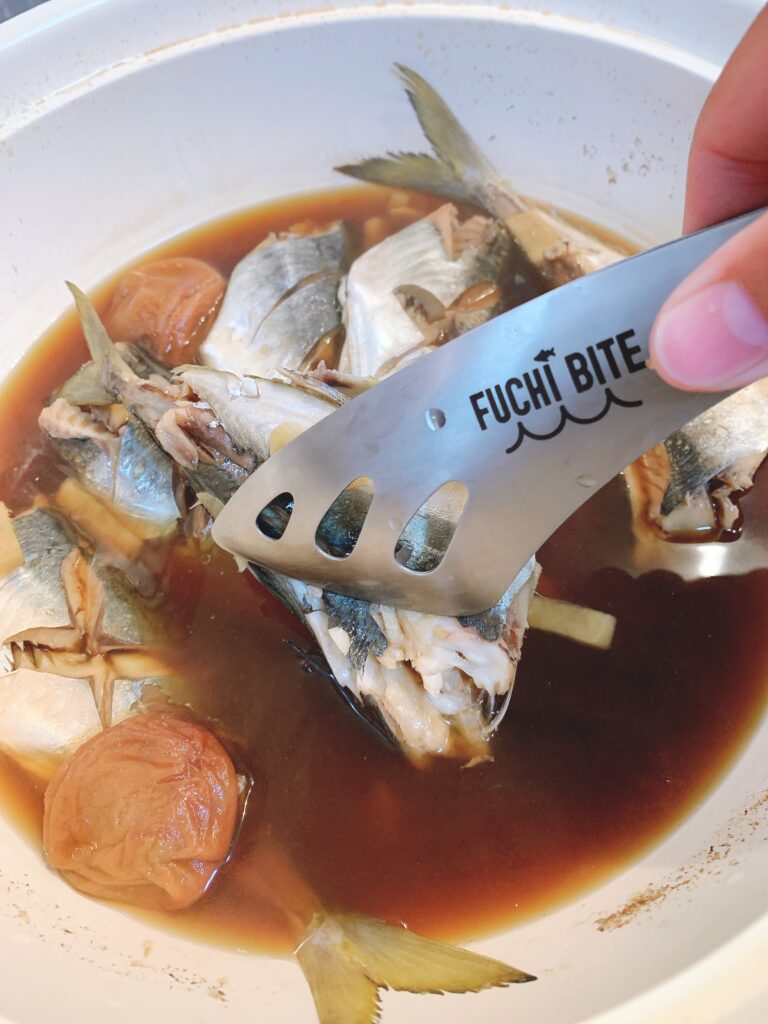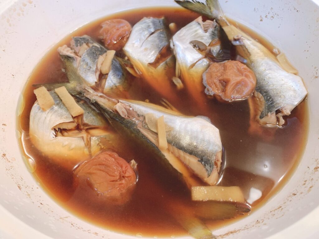 ④全ての調味料を土鍋に入れて少し煮立たせたらアジと梅干しを投入。蓋をして中火で15分程煮る。
