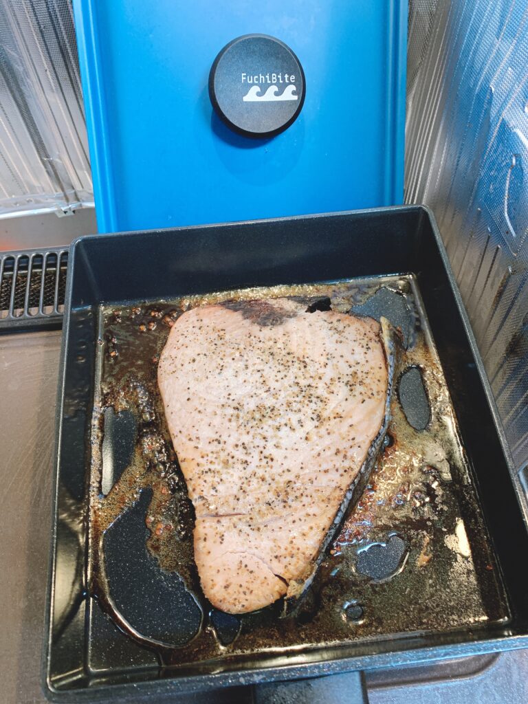 ②塩コショウをしてオーブンで焼く。