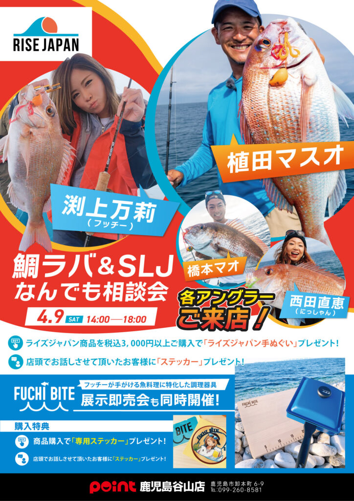 (終了しました)RISE JAPAN×FUCHI BITE 展示即売イベント@釣具のポイント鹿児島谷山店