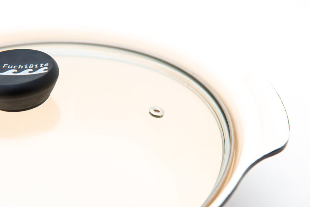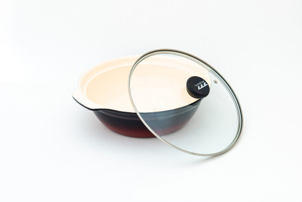 | 材質 | 本体:アルミニウム合金 はり底(溶射):鉄・アルミニウム フタ:全面物理強化ガラス・ステンレス鋼(縁部分) ツマミ:フェノール樹脂 |